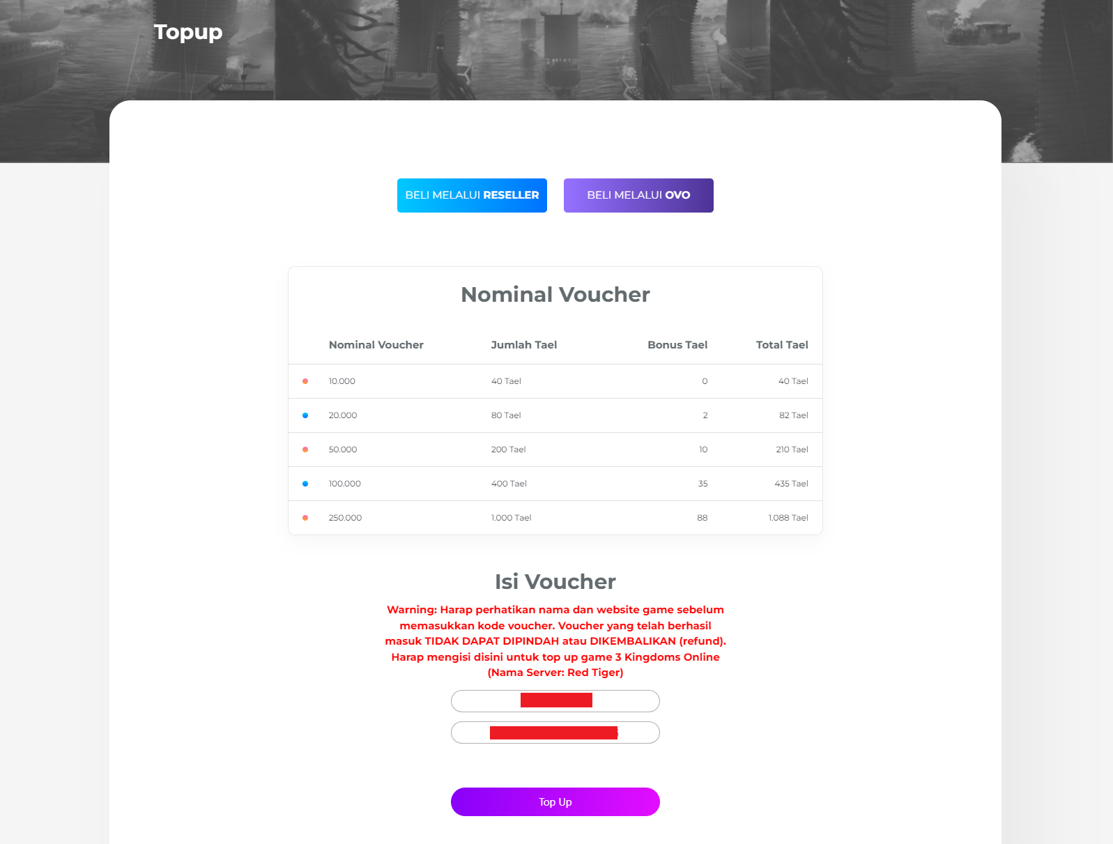 Setelah Login, kamu dapat langsung melakukan pengisian Tael melalui website : http://3k.wavegame.net/, dan klik Isi Tael melalui menu navigasi.
